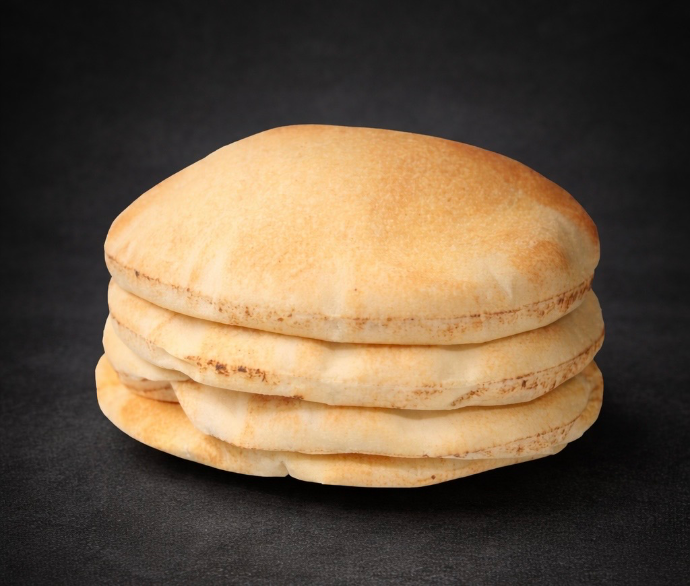 Le pain pita est un pain plat rond et légèrement gonflé, originaire du Moyen-Orient. Sa poche interne se forme lors de la cuisson à haute température, le rendant idéal pour être farci avec divers ingrédients ou utilisé comme accompagnement pour les plat.